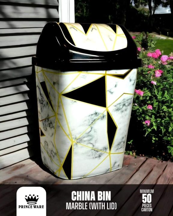 Dustbin with flapper lid, marble printed design.